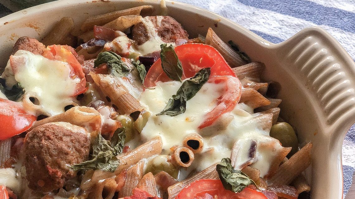 My boyfriend loves a pasta bake. Therefore, I created this gluten free pasta bake for our indoor date night one summer’s evening. I wanted to ensure his favourite meal was fresh and summery, as it is summer time. I really could not think of anything more fresh and summery than Caprese salad! I love making any type of gluten free pasta bake as it’s easy, very versatile, CHEAP and you can make a lot so there are always leftovers for a packed lunch.